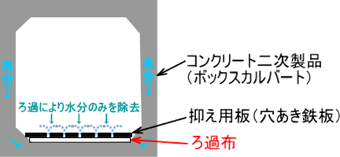 ろ過布使用によりコンクリート素材の流出、型崩れをおこすことなく